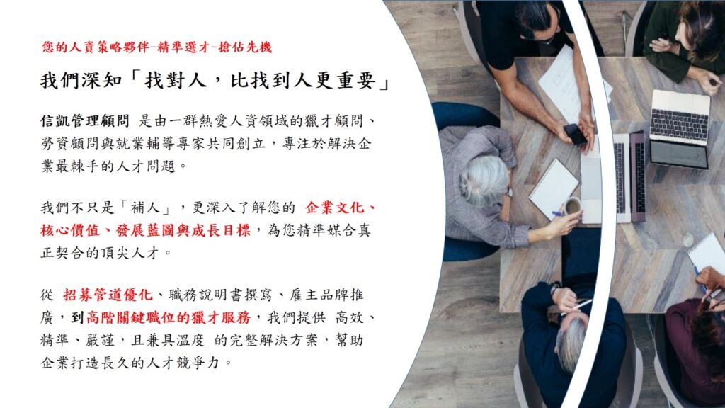 別再等!競爭對手已經找到人了!立即諮詢信凱管理顧問